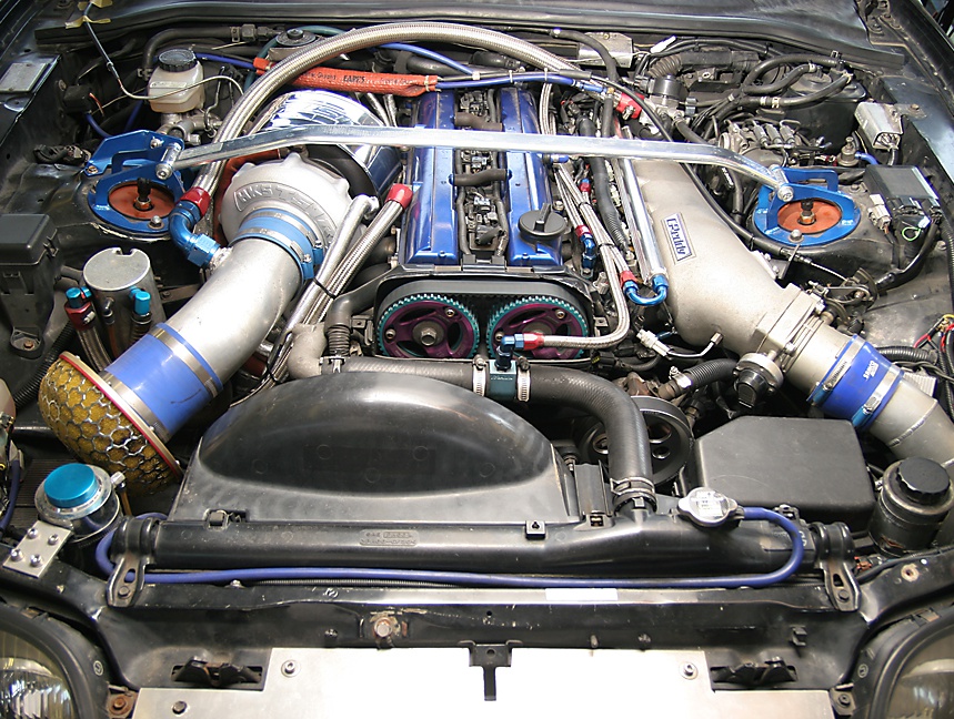 HKS 3.4リッターキット/T51R SPL BBタービン(ブースト圧2.0キロ 800psオーバー)/トラスト サージタンク/HKS ハイカム(IN280°/EX280°)/サード 800cc+444ccツインインジェクター仕様/ヴィッツ用リフター流用/インフィニティ用90φスロットル流用/当社ワンオフマフラー(フロント〜メイン100φ テールエンド115φ)/HKS F-con V proセッティング …他